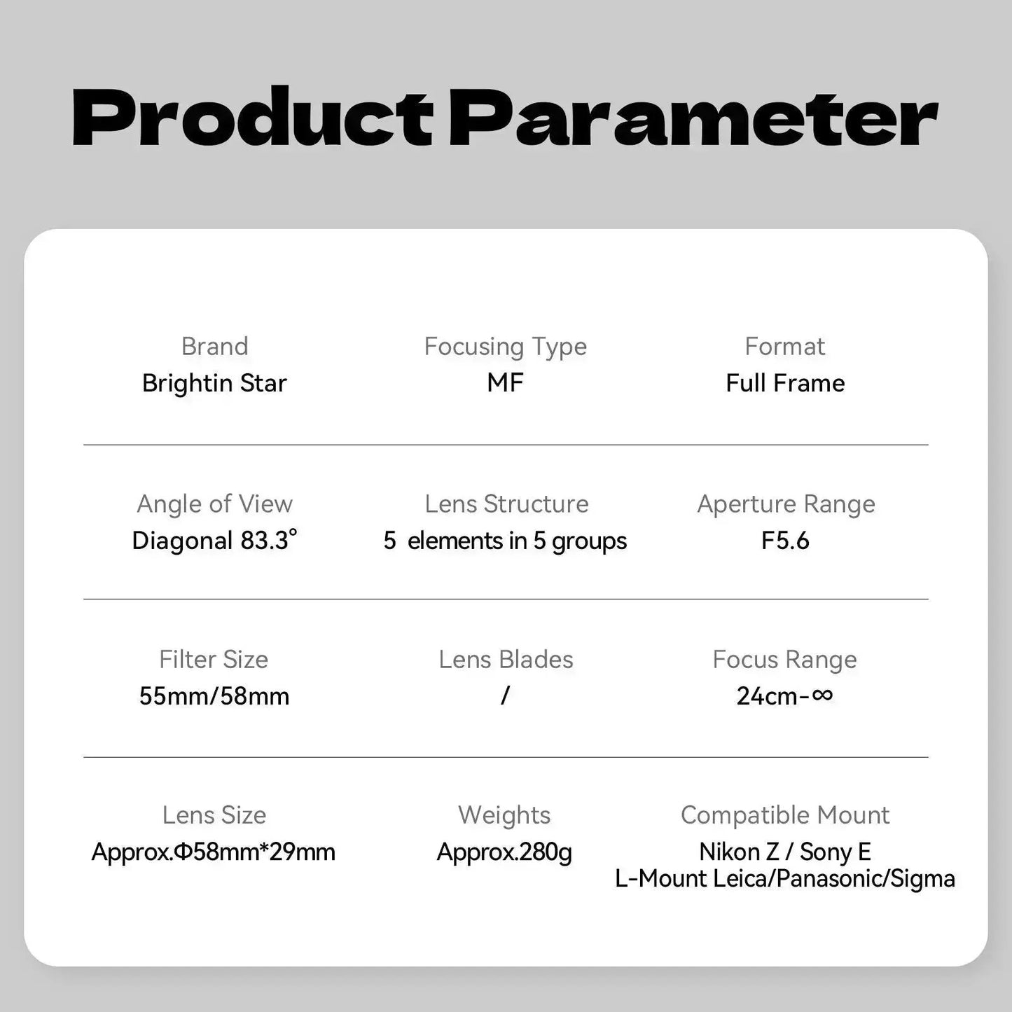 - Name: Brightin Star 23mm F5.6